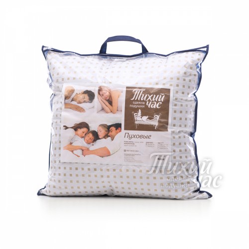 Артикул - Подушка пуховая для сна Коллекция Тихий час Размер: 68х68 см. Вид подушек: Классика Наполнитель: Пух Состав наполнителя: Серый гусиный Пух 100% Вес наполнителя: 1.2 кг. Вид ткани: жаккардный тик Состав ткани: хлопок 100% Степень поддержки: средняя ГОСТ 30332-2015 Упаковка сумка ПВХ Производитель Белашофф Стран производства: Россия