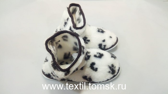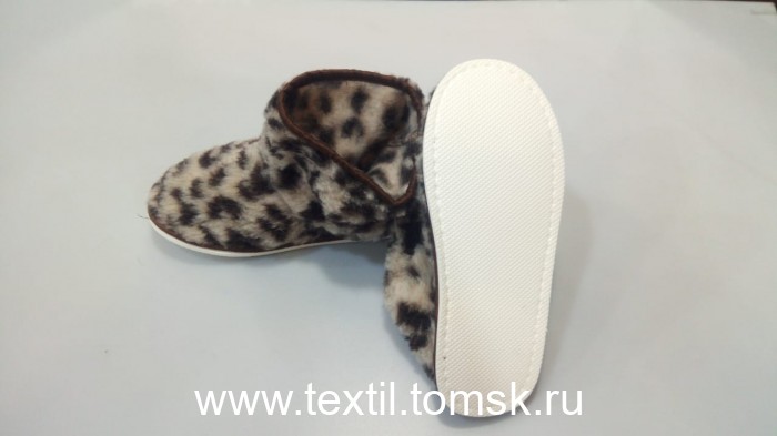 Артикул 8235 - Сапожки домашние женские из овечьей шерсти Материал верха: мех трикотажный с ворсом из овечьей шерсти 70% Содержание П/Э 30%. Подошва: эвапласт толщина 5 мм Цвет подошвы: белый. Цвет верха : Леопард Размер:35 российский. Полнота: 2 Бренд ТапМода. Страна производства Россия.