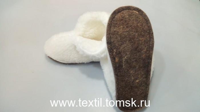 Артикул 10438 - Тапочки женские из овечьей шерсти на войлочной подошве "ЧУНИ" Тапочки женские модель "Чуни" Материал верха: мех трикотажный с ворсом из овечьей шерсти 70% Содержание П/Э 30% Подклад: мех трикотажный с ворсом из овечьей шерсти 70% Подошва: войлок ( 100%шерсть) толщина 10 мм. Цвет: белый Размер:38 российский. Полнота: 2 Бренд ТапМода. Страна производства Россия. Купить